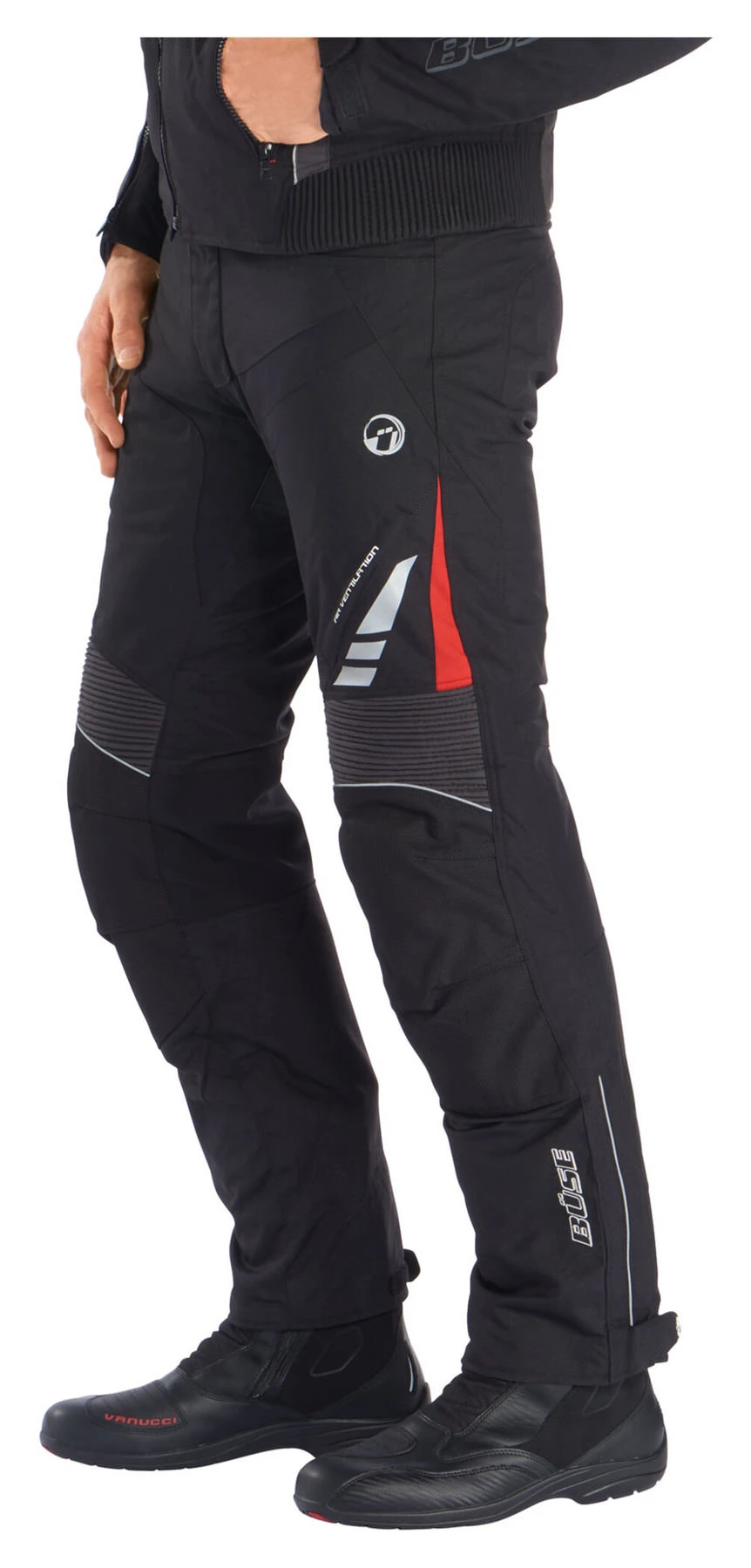 If you like sporty all-weather trousers with qualities that you can appreciate on long journeys but also during everyday use, then Büse B-Racing Pro textile trousers are just what you need. Appealing sporty design and useful safety features make the B-Racing Pro an excellent choice. It also goes perfectly with the Büse B-Racing Pro jacket.