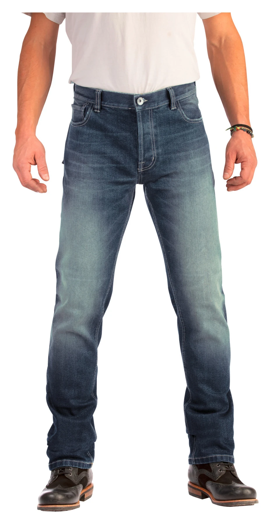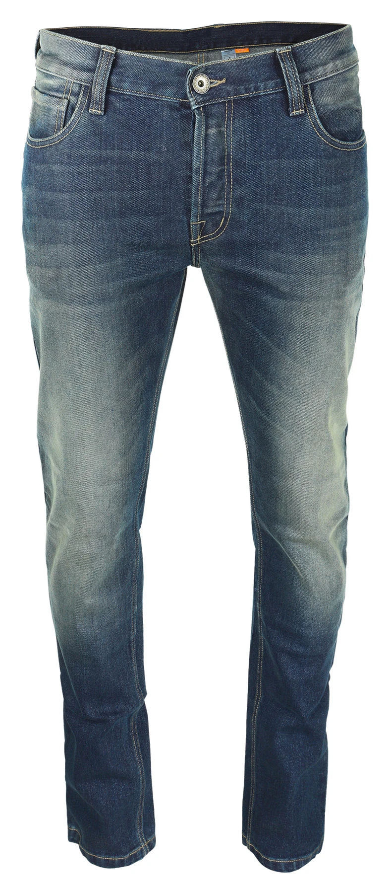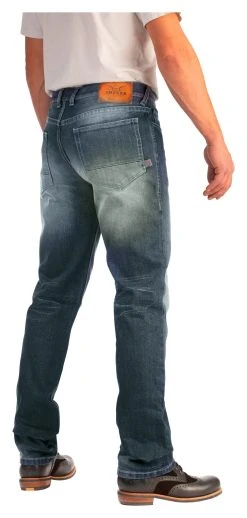 Highly abrasion-resistant, single-layer motorcycle jeans in five-pocket style.
